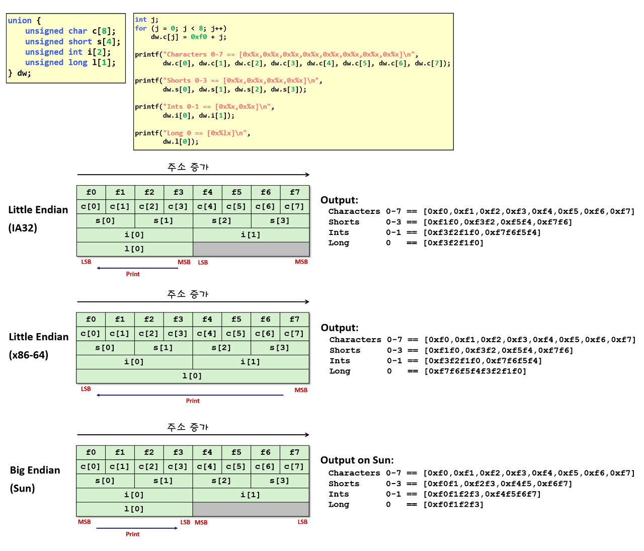 공용체의 가장 큰 장점은 하나의 공간을 여러 자료형의 관점에서 사용할 수 있다는 것이다.