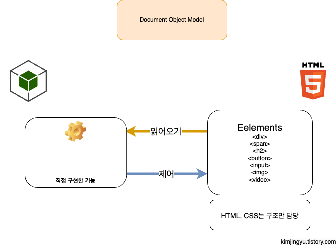 - 자바스크립트로 HTML을 수정, 변경하거나 HTML에 작성된 내용을 자바스크립트 변수에 담아서 사용하는 등에 사용된다.