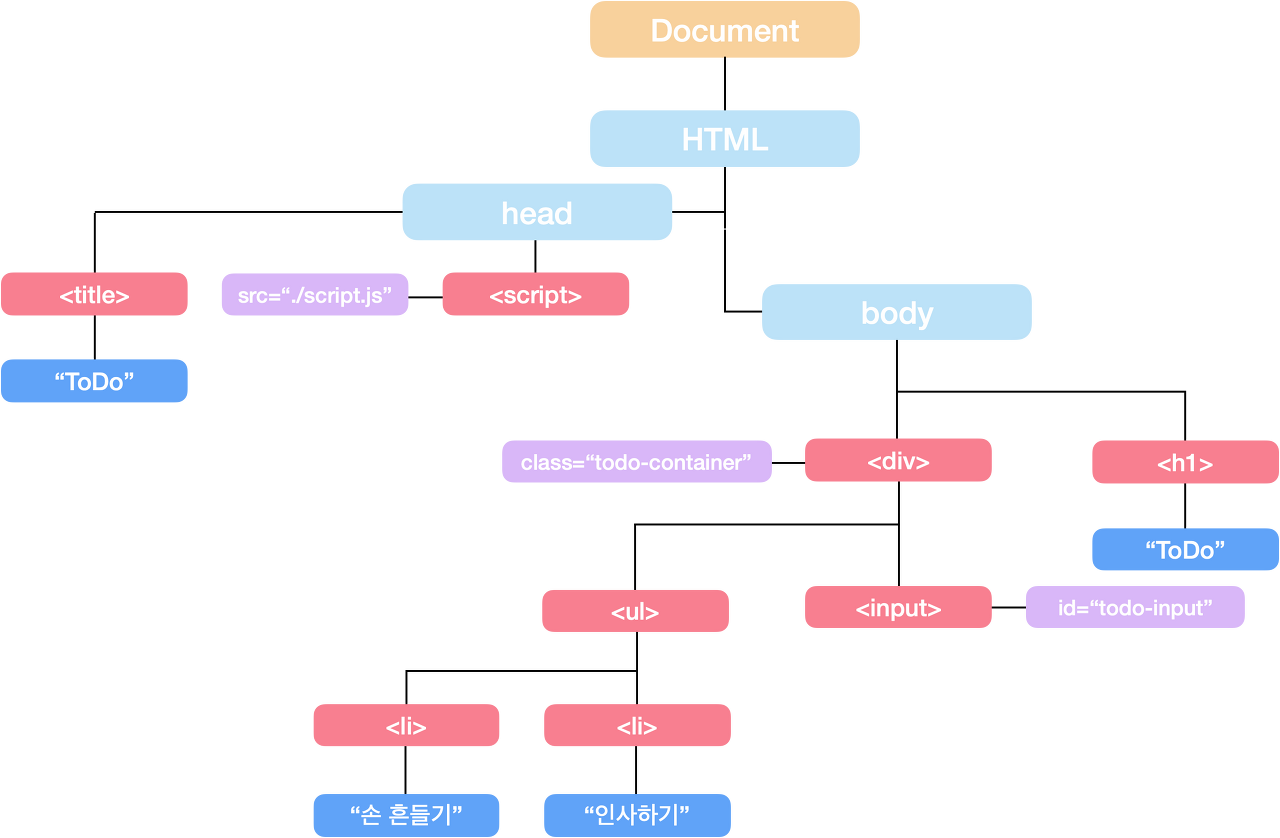 - 웹 브라우저가 정적인 웹 페이지를 변경하거나 조작하기 위해 HTML 파일을 자바스크립트 객체로 만들어주는 것