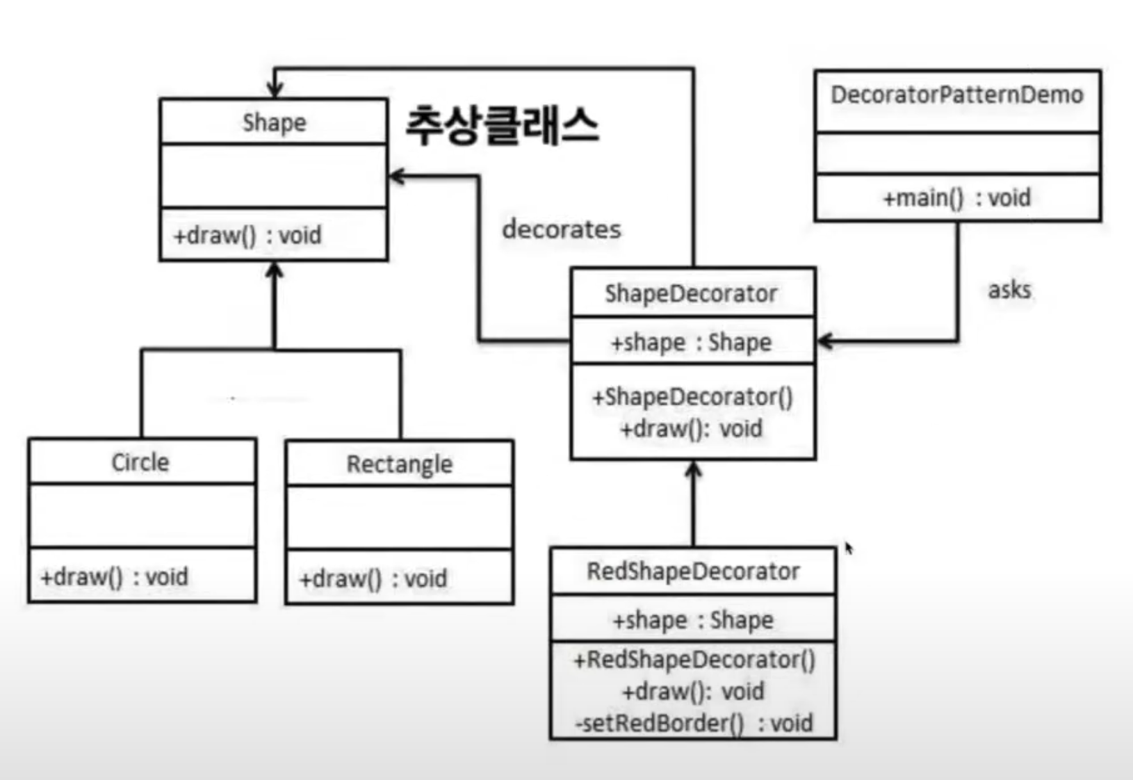 그리고 이를 사용할 때, 장식할 대상인 Circle을 받아들여 장식해주는 RedShapeDecorator를 코드로 쓰면 다음과 같다.