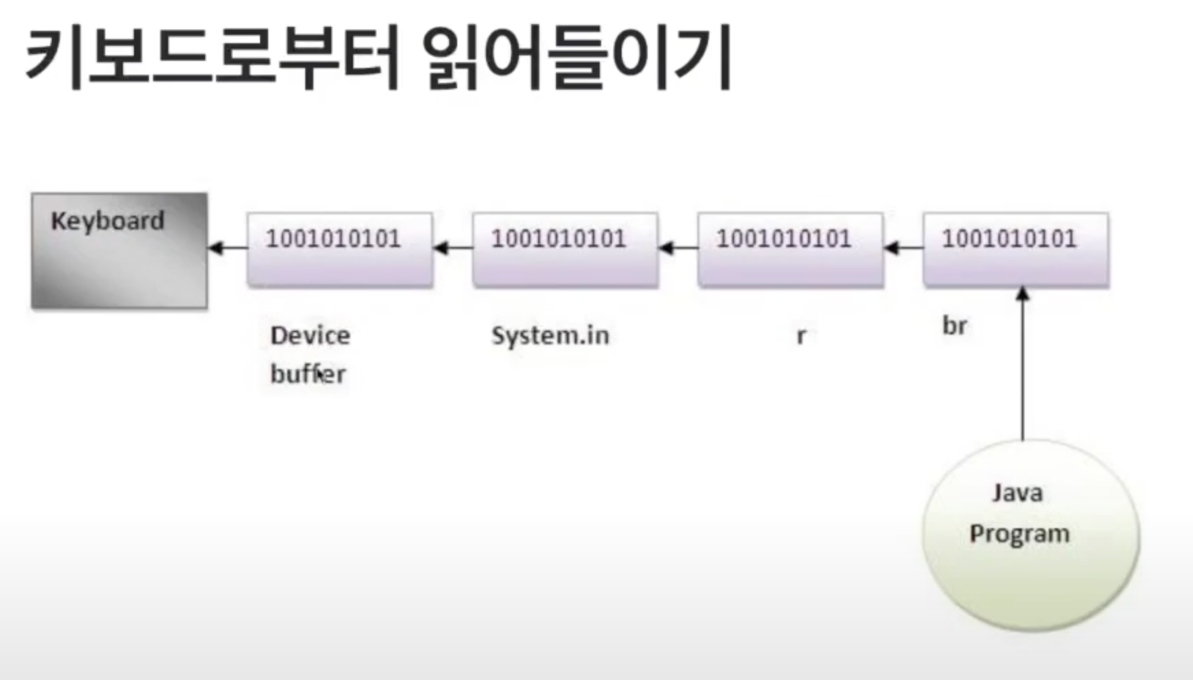 - Device Buffer : 운영체제 buffer. Enter 입력전까지 입력 후에는 자바 프로그램에 전달