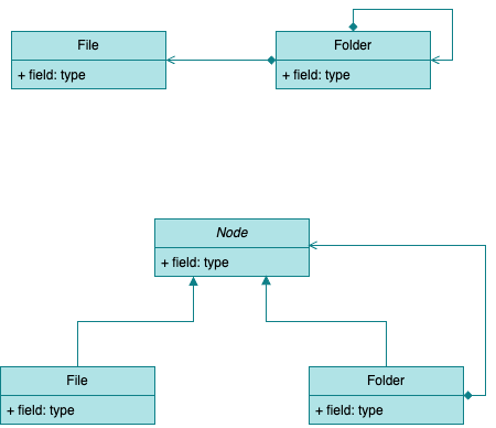 다음 그림은 Foler는 파일 컴포넌트의 자식들을 가진다.
