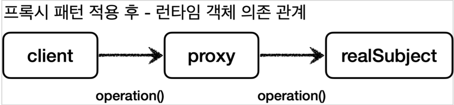 또한 클라이언트의 코드 변경 없이 프록시 객체를 넣고 뺄 수 있기 때문에, 실제 클라이언트의 입장에서는 프록시 객체가 주입되었는지, 실제 객체가 주입되었는지 알지 못한다는 것이다.